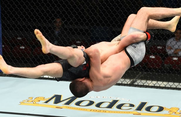 Instead of just doing a typical slam, he decided to carry Torres part way across the Octagon, then jump up into the air and fall backwards, intending to send his full body weight crashing down onto his opponent.