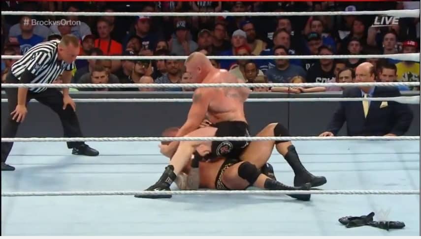 Then this happened. Watch the exact moment Lesnar accidentally catches Randy Orton with a real elbow, instantly cutting his opponent’s head wide open.
