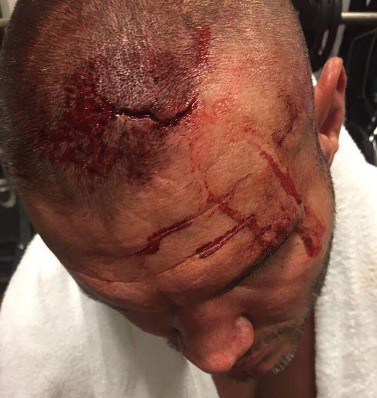 For those claiming this must be fake, well it wasn’t, as Randy Orton received 10 staples in his head. Here’s the photo of the gaping wound.