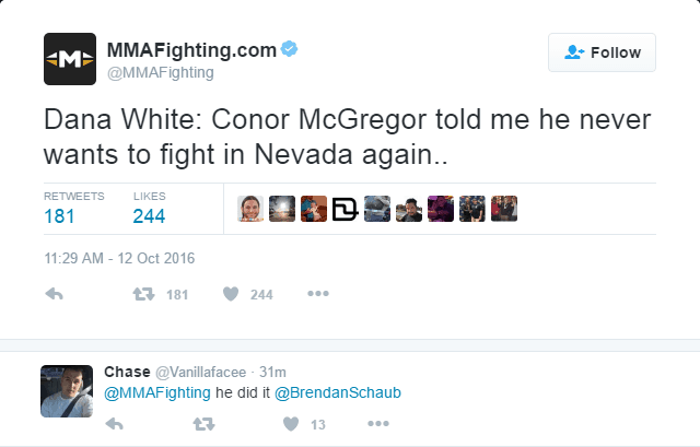 — Conor McGregor (@TheNotoriousMMA) October 10, 2016