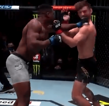 Ngannou then landed a lunging jab that knocked Stipe down. Although the Champ stood up right away, he still looked hurt.