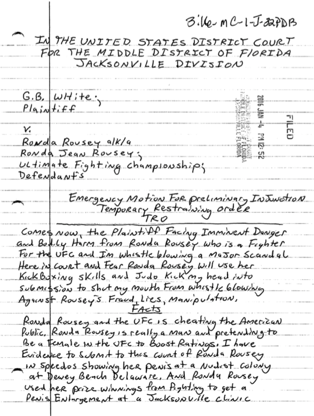Well, here it is, n all it’s batshit craziness and insane glory. The hand written lawsuit that was OFFICIALLY filed with the Florida District court: