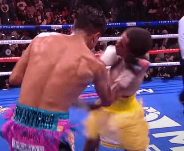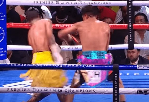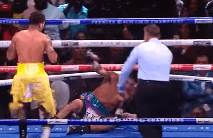 After scoring a knockdown, Davis tried to go for the finish. He then landed another knockdown but Barrios is as tough as they come. He went on to survive and even threw punches.