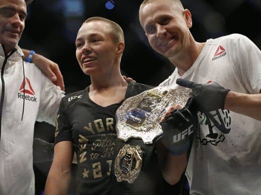 Rose Namajunas celebrates after defeating Joanna Jedrzejczyk at UFC 217 at Madison Square Garden in New York. Noah K. Murray, USA TODAY Sports