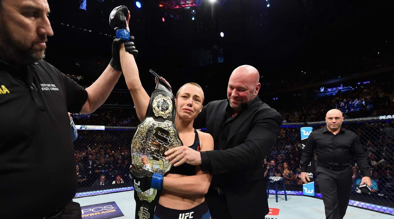 Competing for the women’s strawweight title were Joanna Jedrzejczyk and Rose Namajunas. ‘JJ’ had reigned dominant over the division since 2015. Unbeaten as an amateur and pro in MMA, Jedrzejczyk was the heavy favorite to continue her streak.