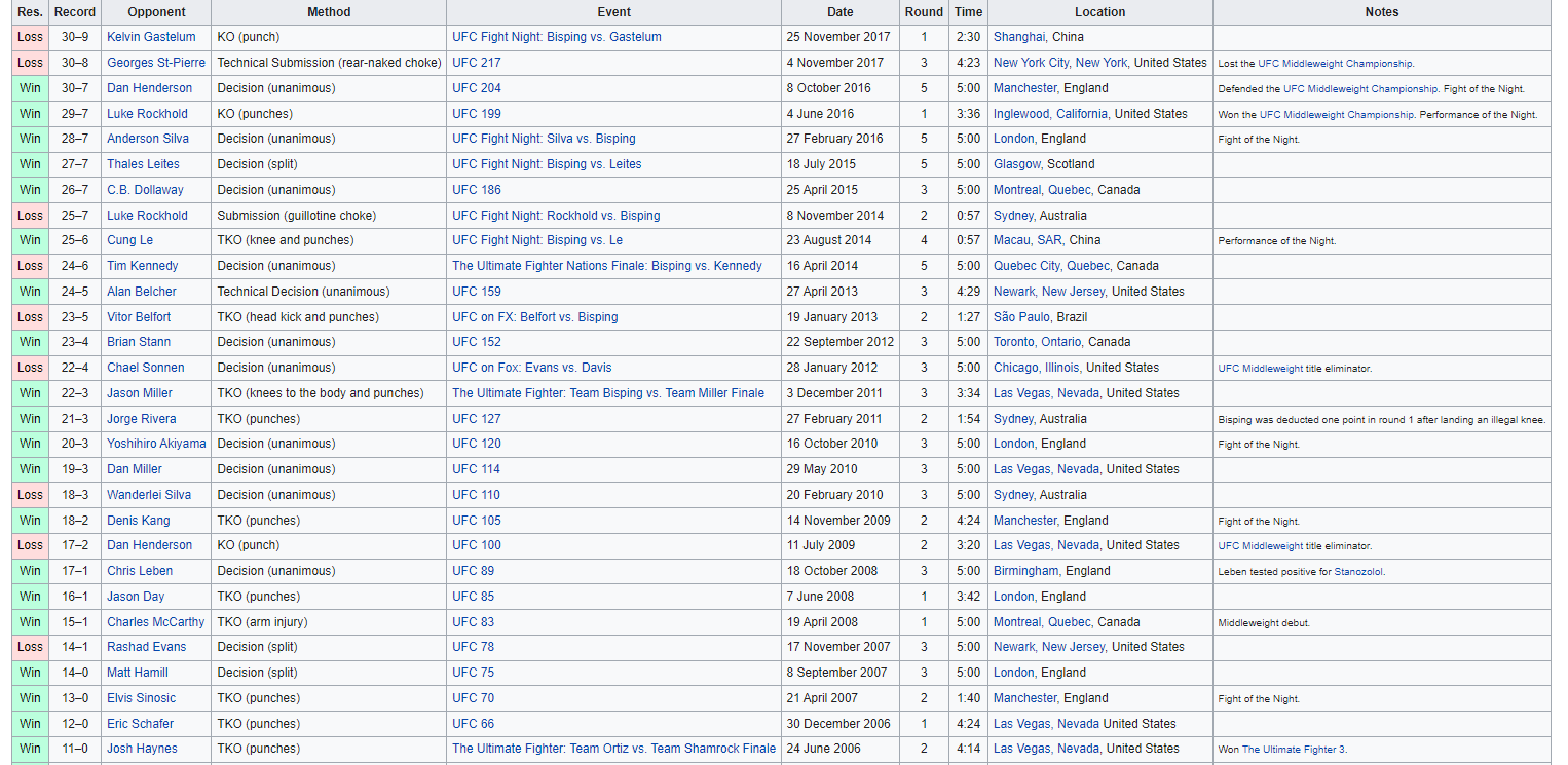 Bisping usually goes on a winning streak but always fell short in title eliminators. He went on to win 4 straight before losing in a title eliminator against Chael Sonnen. Although the fight had great exchanges on the mic since Sonnen and Bisping are known for their trash talks.