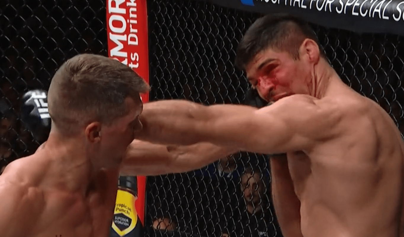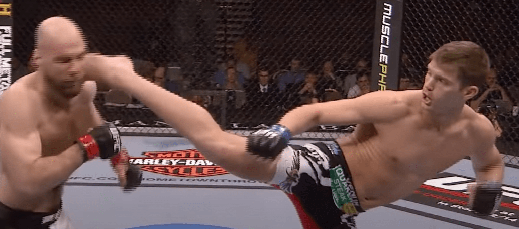 As expected Thompson was picking Pettis apart, and was looking to cruise a one-sided decision or a late stoppage win but at the last seconds of the second round, Pettis jumped off the cage and landed an unexpected punch that put Thompson to sleep. It was one of the most shocking moments in MMA history and also the first time Thompson has been knocked out.