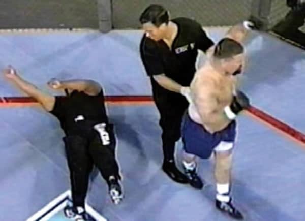 A self-confessed barroom brawler, Abbott waded forward from the opening bell and clubbed the 400lb John Matua over the head with a right hand, sending him down on one knee.