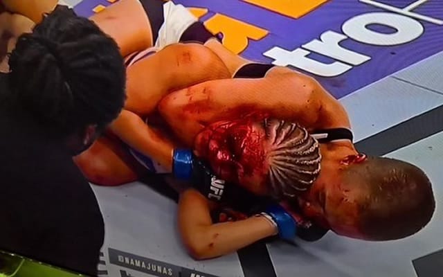 “That is one of the quickest bleeding cuts I think I’ve ever seen,” Joe Rogan observed from his vantage point. “That’s like a broken fire hydrant.”