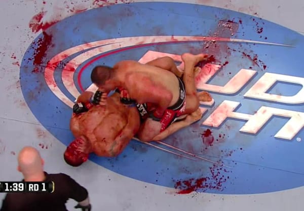 Remarkably, despite the amount of crimson being spilled, Lauzon never showed any sign of quitting as he and Miller continued to go to war for the entire 15 minutes, leaving the Octagon covered with large quantities of his blood.