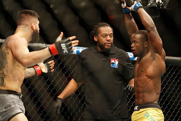 “I was working the whole time,” Homasi complained afterwards. “As soon as I got hit, I felt the hit, I went down and I went for my takedown.”