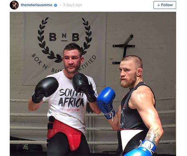 As well as working with Dillon Danis on his Jiu Jitsu and the Irish Olympic boxing team, Conor McGregor has been regularly sparring with former boxing champion Chris Van Heerden. Just yesterday (July 4, 2016) a brand new video emerged of the two boxing training for McGregor’s UFC 202 rematch with Nate Diaz.