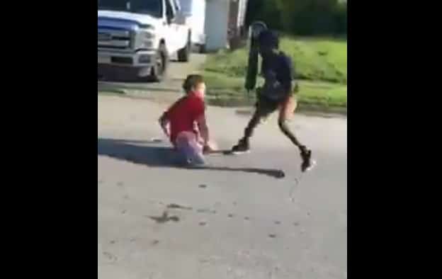 It’s absolutely mental. We’ve no idea why these two kids were fighting in the first place – and don’t support street violence – but hey, this young dude is a badass. His opponent is dancing around him, afraid to engage. So what does he do?